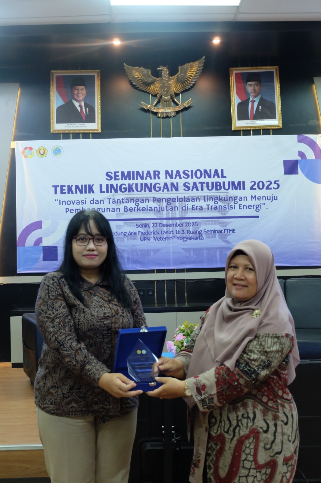 Telah dilaksanakan Seminar Nasional SatuBumi 2025. Seminar Nasional ini dilaksankan di Gedung Arie Frederick Lasut, Lantai 3. Ruang Seminar FTME UPN “Veteran” Yogyakarta. Dekan FTME, Prof. Dr. Ir. RM. Basuki Rahmad, M.T berkesempatan menyampaikan sambutan dalam acara Seminar Nasional ini. Mahasiswa maupun Dosen Teknik Lingkungan juga sangat antusias mengikuti serangkaian kegiatan Seminar Nasional yang diadakan pada hari Senin, 22 Desember 2025.